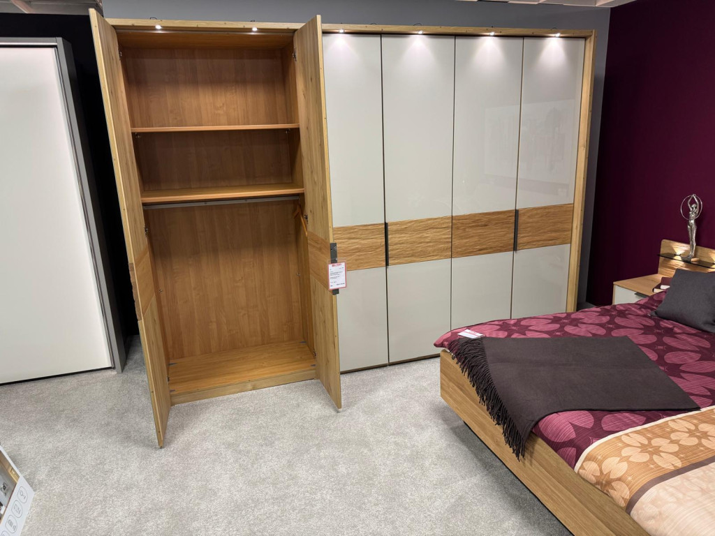 Hochwertige Schlafraumeinrichtung Glas Champagner Riffholz Eiche massiv Style