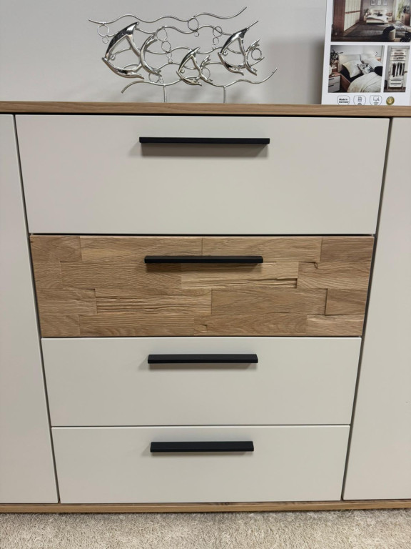 1x Superkombikommode B: 155cm H:83cm T: 46cm mit 4 Schubkästen und 2 Türen Absatz Spaltholz.