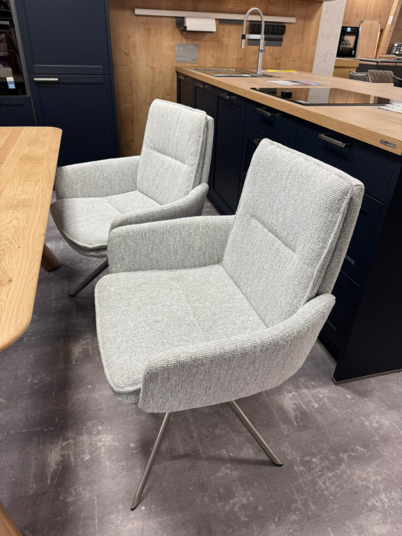 2x Design-Armlehnstühle Chandler mit Stativ-gestell, 180° drehbar Edelstahl gebürstet