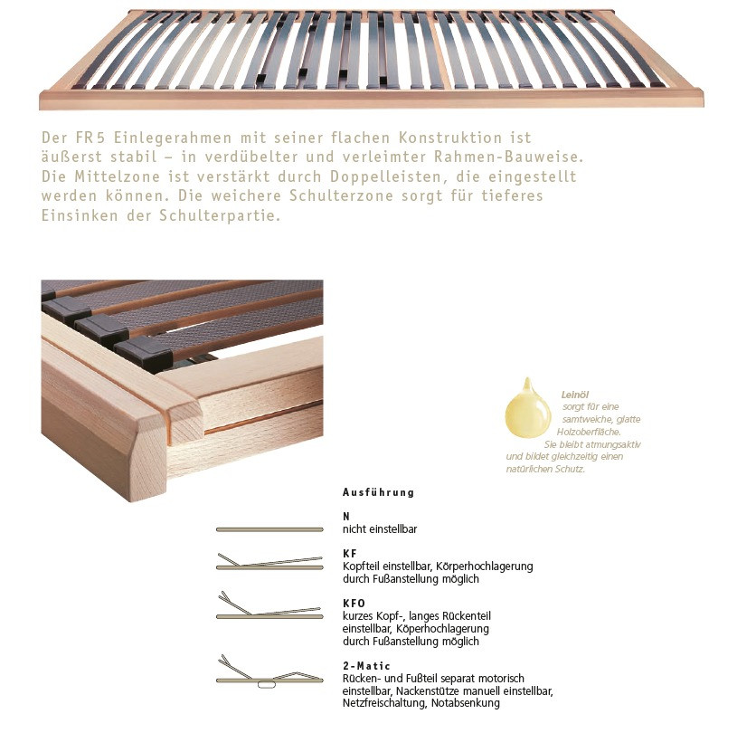 * Liegefläche aus mehrfach verleimten Buche-Federholzleisten