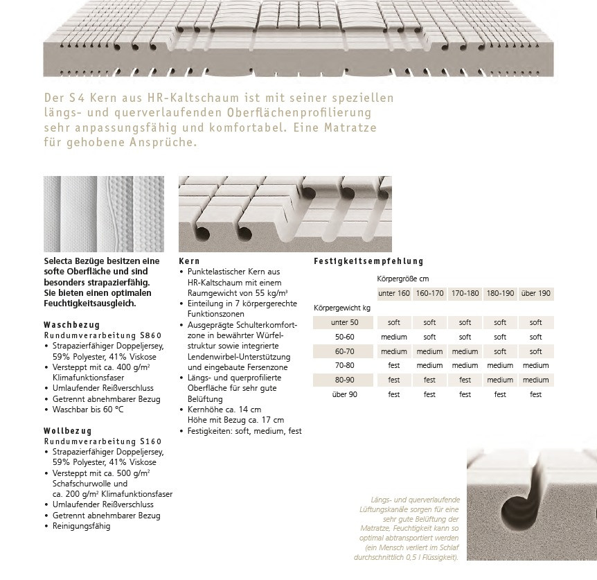 Selecta Kaltschaum-Matratze S4 90cm x 200cm