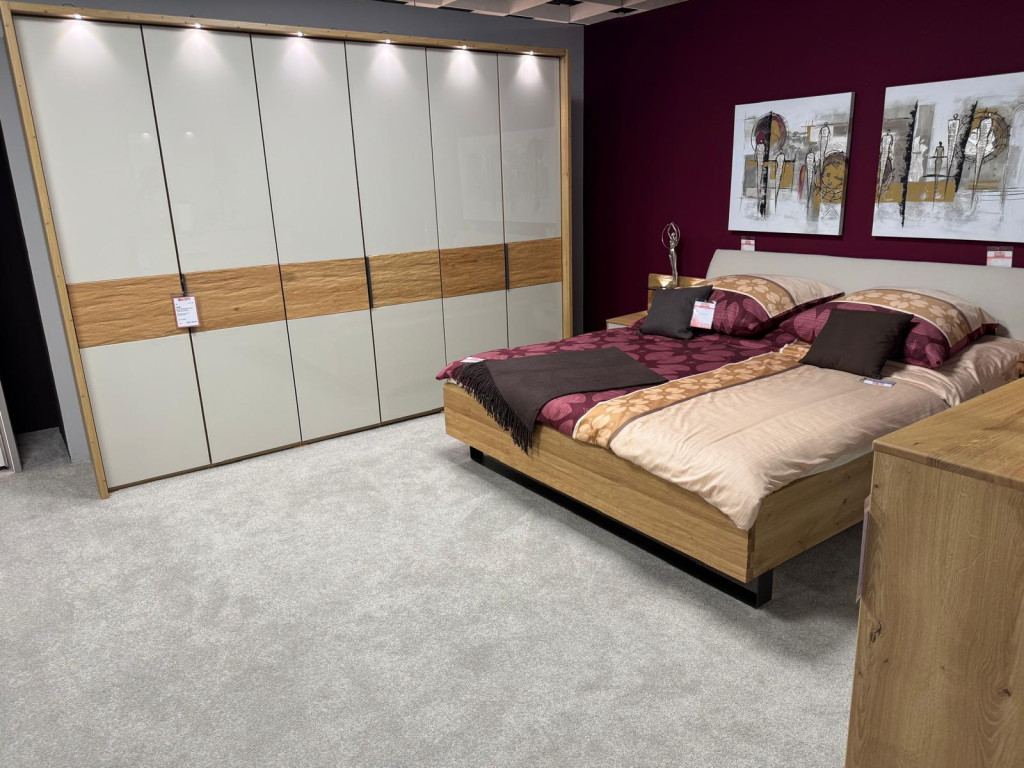 Hochwertige Schlafraumeinrichtung Glas Champagner Riffholz Eiche massiv Style