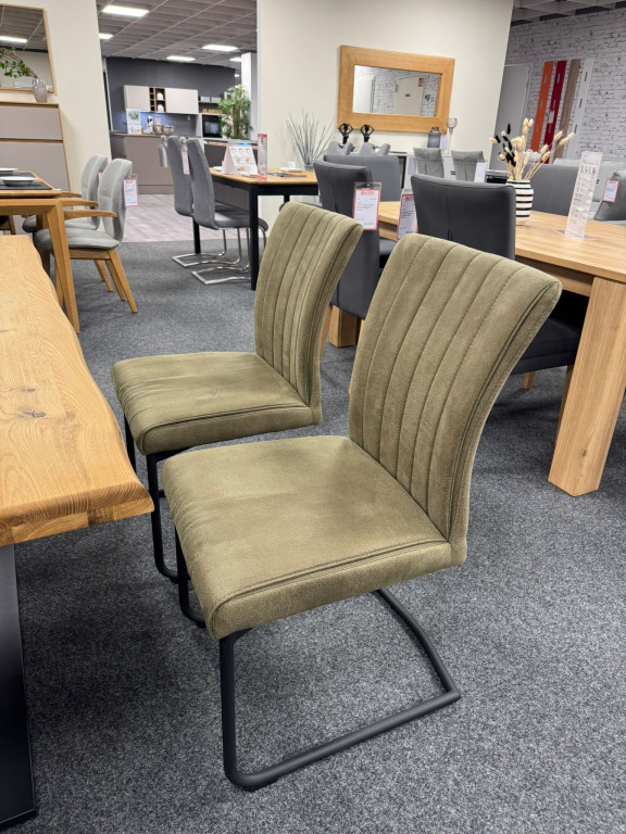 Design Carva exklusiv 4x Schwingstühle mit PfeiffensteppungRundrohr schwarz, Microfaser grün.2x Armlehnstühle Carva mit Nosagfederung in Microfaser grün.Lieferung auf Anfrage gegen Aufpreis möglich.